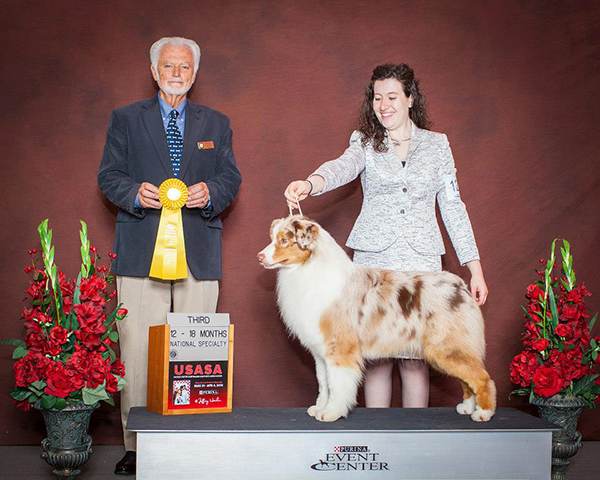 Declan placed 3rd in his 12-18 month dog class under Judge Mr. Houston Clark, handled by Maria Neff.